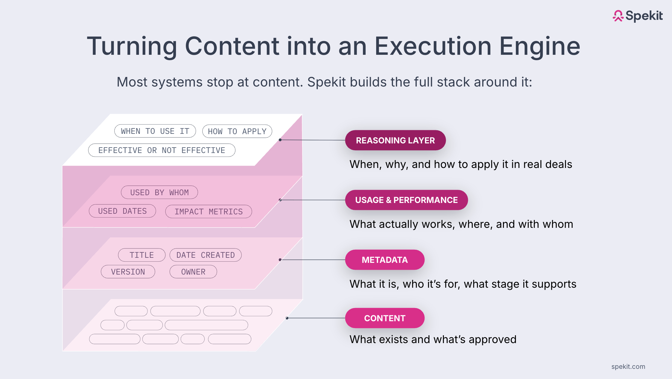 “Content accuracy is table stakes. The harder question is: which asset moves this buyer forward right now.”