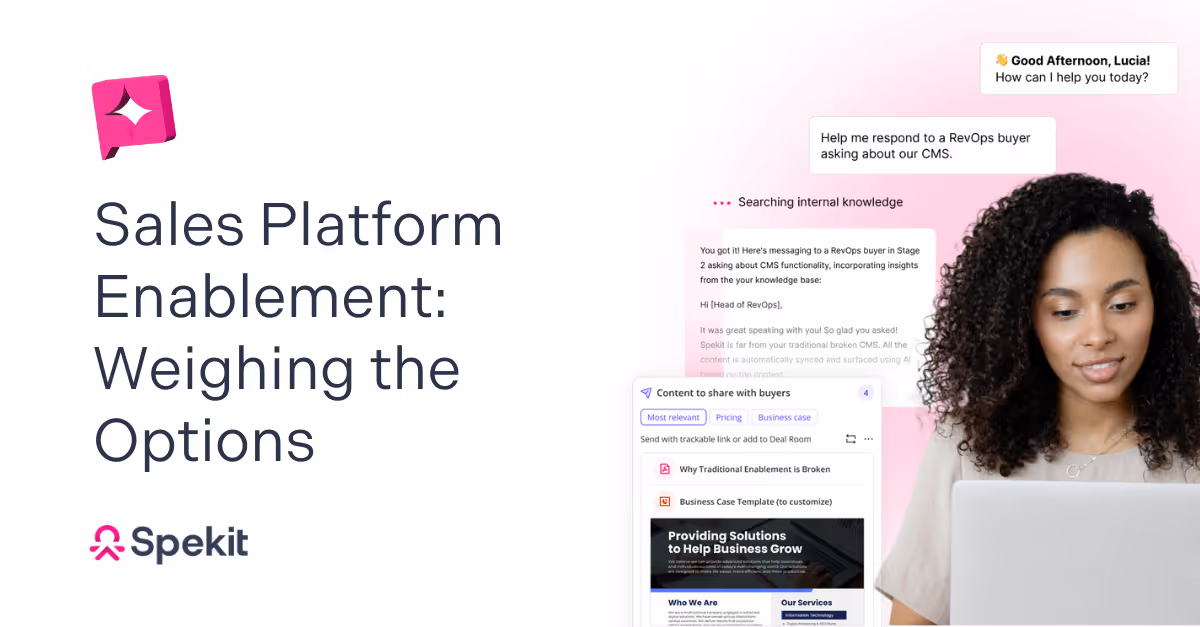 Modern revenue teams don’t need another portal. They need answers in the flow of work, content that stays accurate by design, and enablement that connects directly to outcomes like stage progression, win rates, and time to close. If finding the “one right thing” takes more than 30 seconds, reps disengage and ROI stalls.