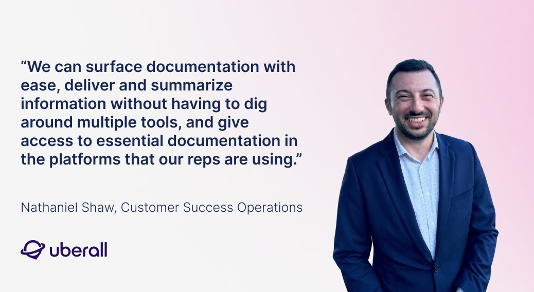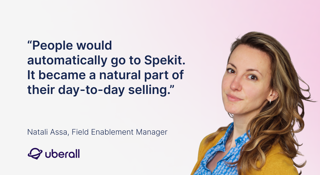 "We knew we needed to reduce our tools so people don’t have to jump between different systems all the time. Our reps live in Salesforce and Gong, so it’s critical that our enablement lives there too,” said Natali Assa, the Field Enablement Lead at Uberall.