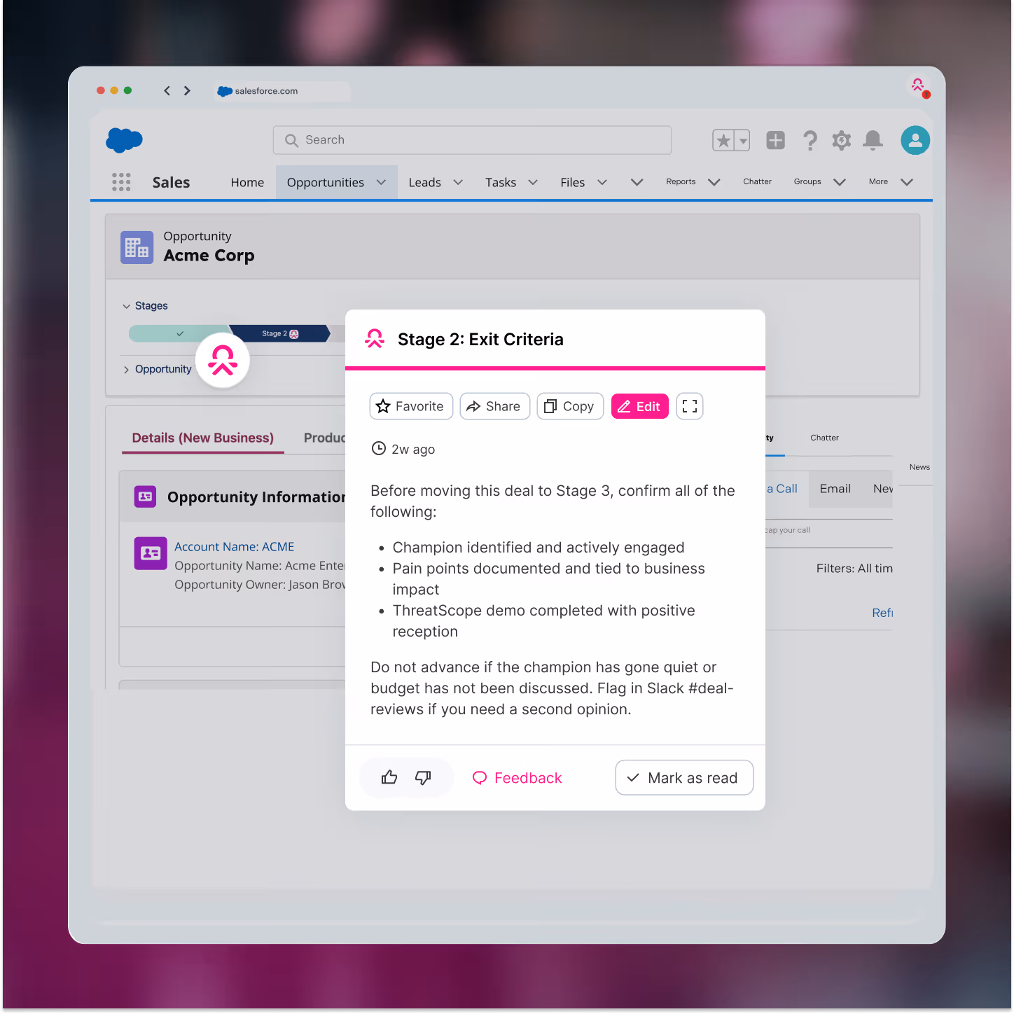 Guidance and coaching arrive inside Salesforce, Gmail, Gong, and every tool reps already use. Reps can focus on selling and enablement teams see higher adoption of playbooks, content, and processes.
